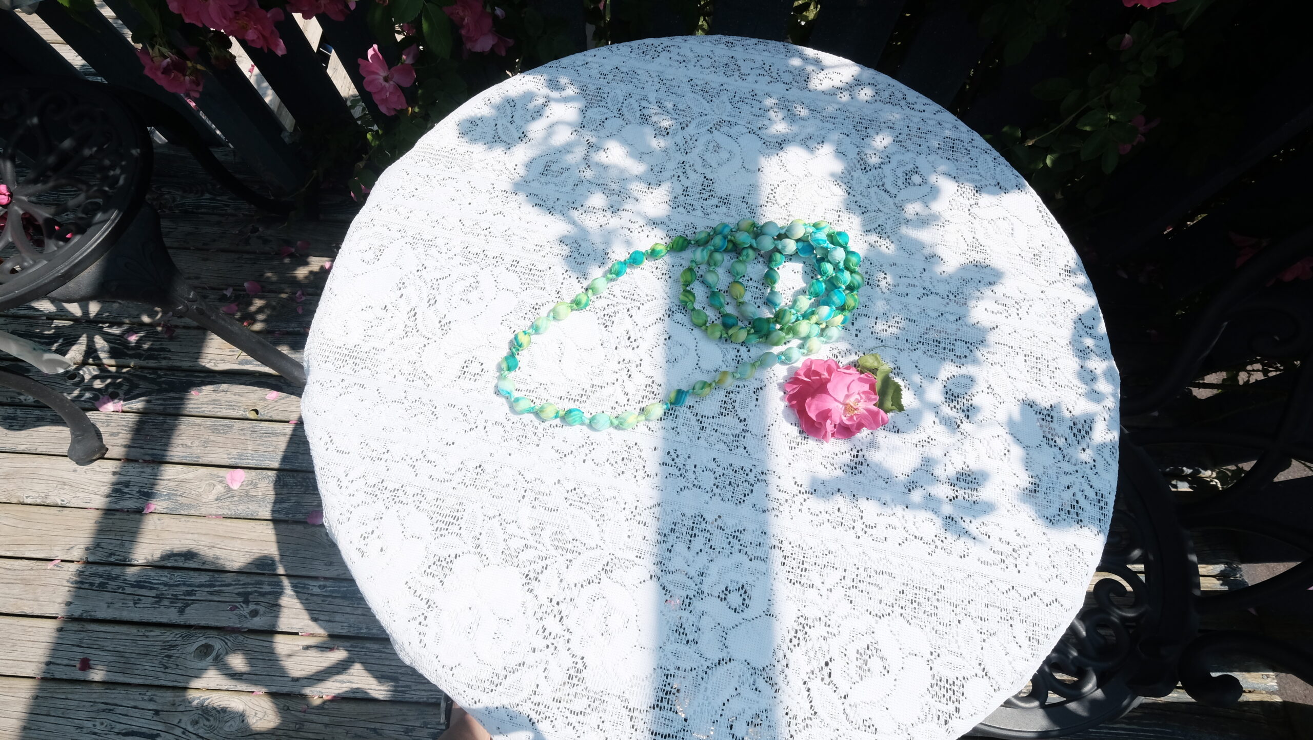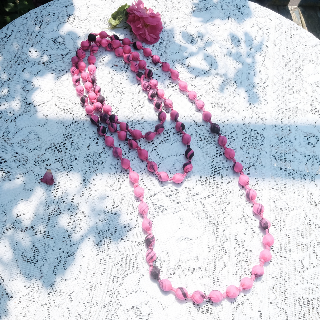 🌸 Mulberry Silk & Wood Bead Necklace – Handmade Long Silk Necklace