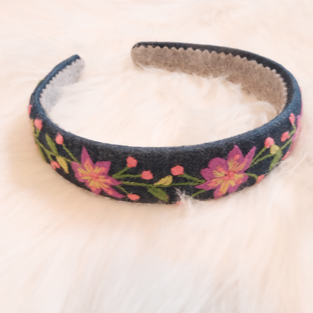 ♥ Embroidered Linen Floral Headband | Boho Turban Style | Unique Hand-Stitched Design | Flower Embroidery Hair Accessory for Women ♥